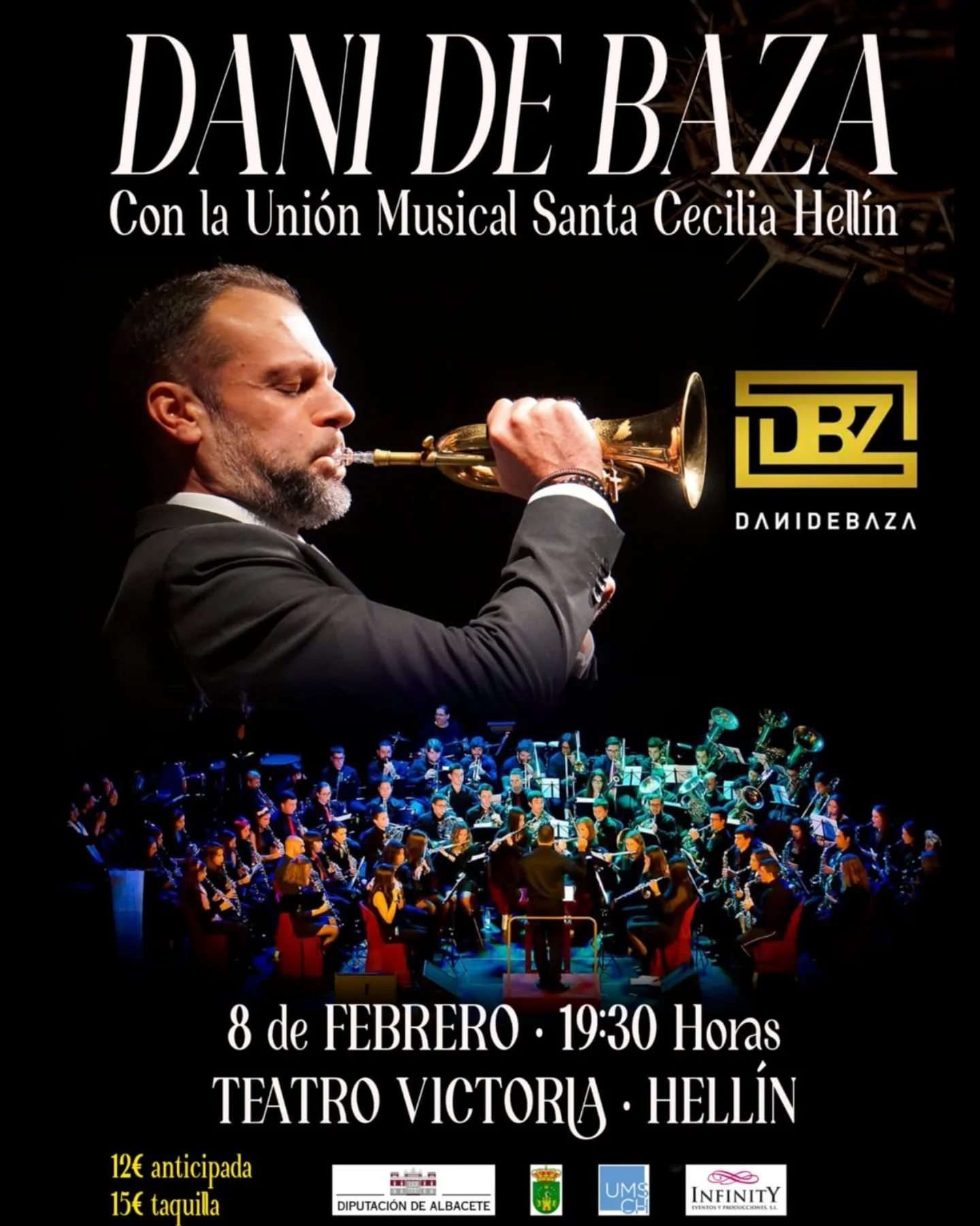 El próximo sábado, 8 de febrero, se llevará a cabo un concierto a cargo de la Unión Musical Santa Cecilia de Hellín, acompañada por el prestigioso solista de corneta andaluz Dani de Baza. Dicho concierto se realizará en el Teatro Victoria de la localidad.