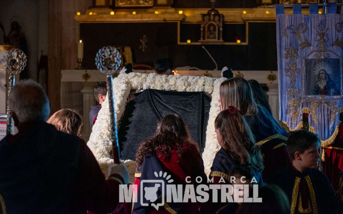 Este año, el emplazado no era el habitual. Se trataba de la parroquia de la Asunción, lo que añadió un toque más solemne y significativo al acto, en un ambiente recogido y tenue. En un altar presidido por las dos imágenes titulares, que acompañaron a los presentes en un evento que marca el inicio de la Semana Santa para esta cofradía.