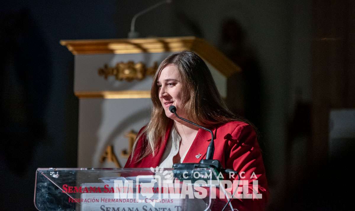 Entre las intervenciones, la primera en subir al ambón fue la alcaldesa de Tobarra, Estefanía Escribano, quien puso en valor que “la Dolorosa representa para Tobarra mucho más que una imagen o una hermandad, es un símbolo de fe, de consuelo, de silencio compartido y de acompañamiento.
