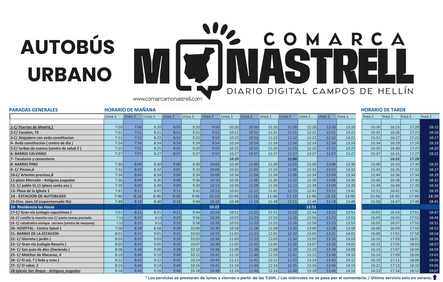 Hellín - Albacete: 9:25 horas y 17:20 horas